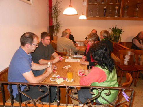 So „zockten“ auf 8 Tischen 32 Spieler um den Gewinn der „Schweinspreise“. Gegen etwa 22.°° Uhr stand fest, dass der Sieger Hermann Haimerl heißt. Haimerl gewann das Borstentier mit 29 Punkten vor den beiden Zweitplatzierten Markus Voitl und Edwin Schedlbauer mit je 23 Punkten. Als beste Dame wurde Franziska Held mit 6 Punkten auf Platz 9 gewertet. Vorjahressiegerin Gerlinde Gierl belegte Platz 11.